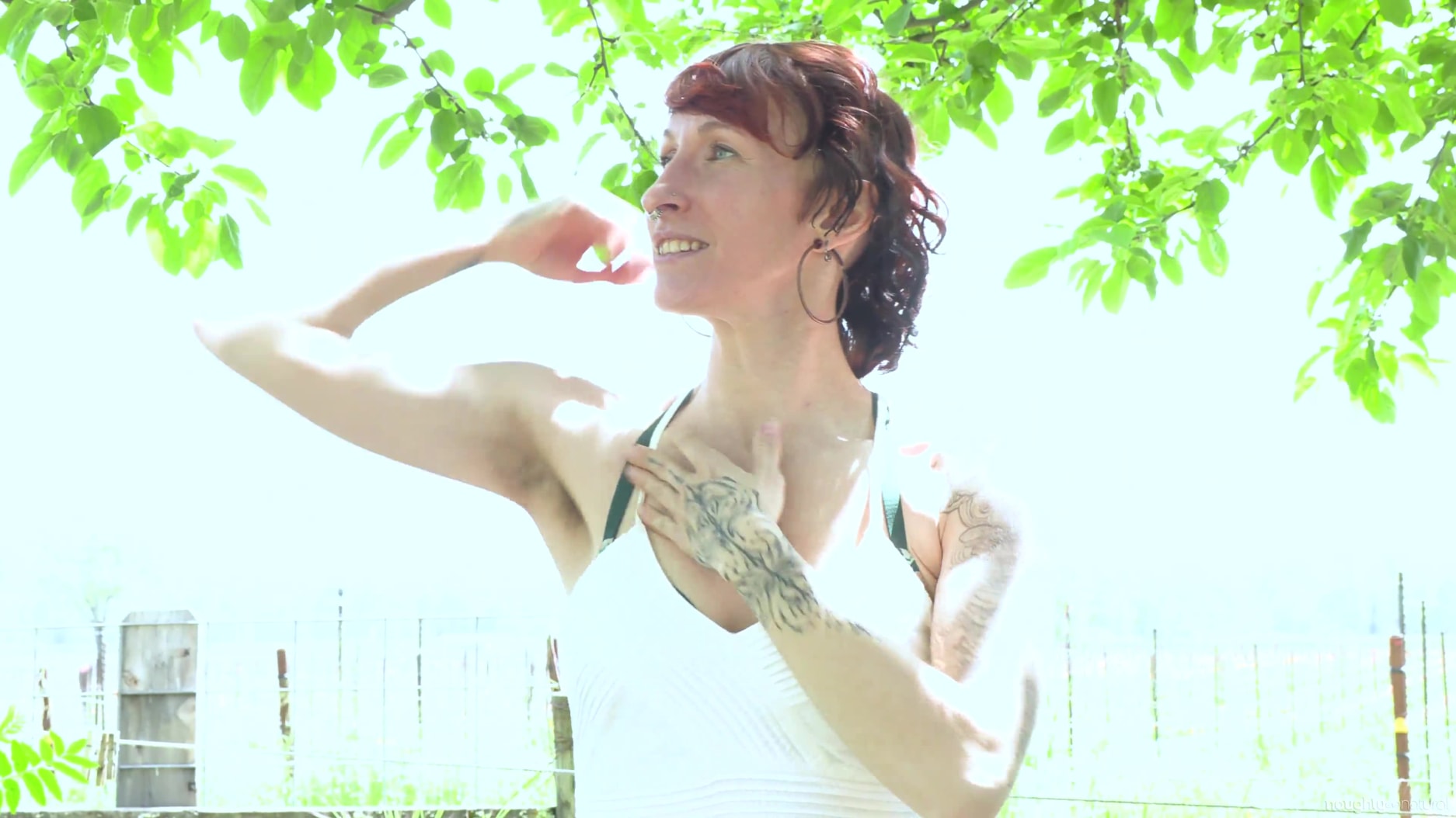 Delilah's looking radiant in the California sunshine. She teases you with her huge natural tits, thick curvy ass, and gorgeous ginger bush before sitting down to masturbate in nature.