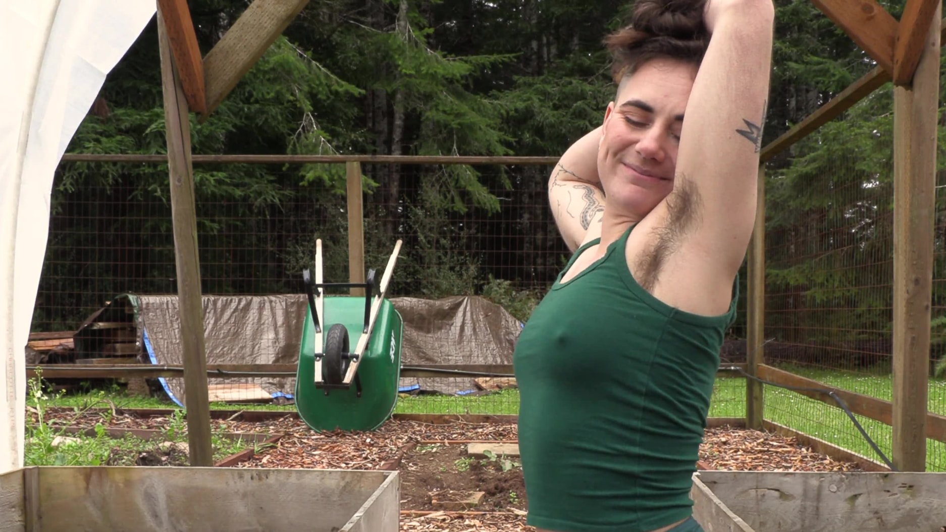 After a long day of getting dirty, Nicola's ready for a hot bath. They take their time teasing you, getting their white panties and t-shirt nice and wet before getting naked and toying with their body hair.