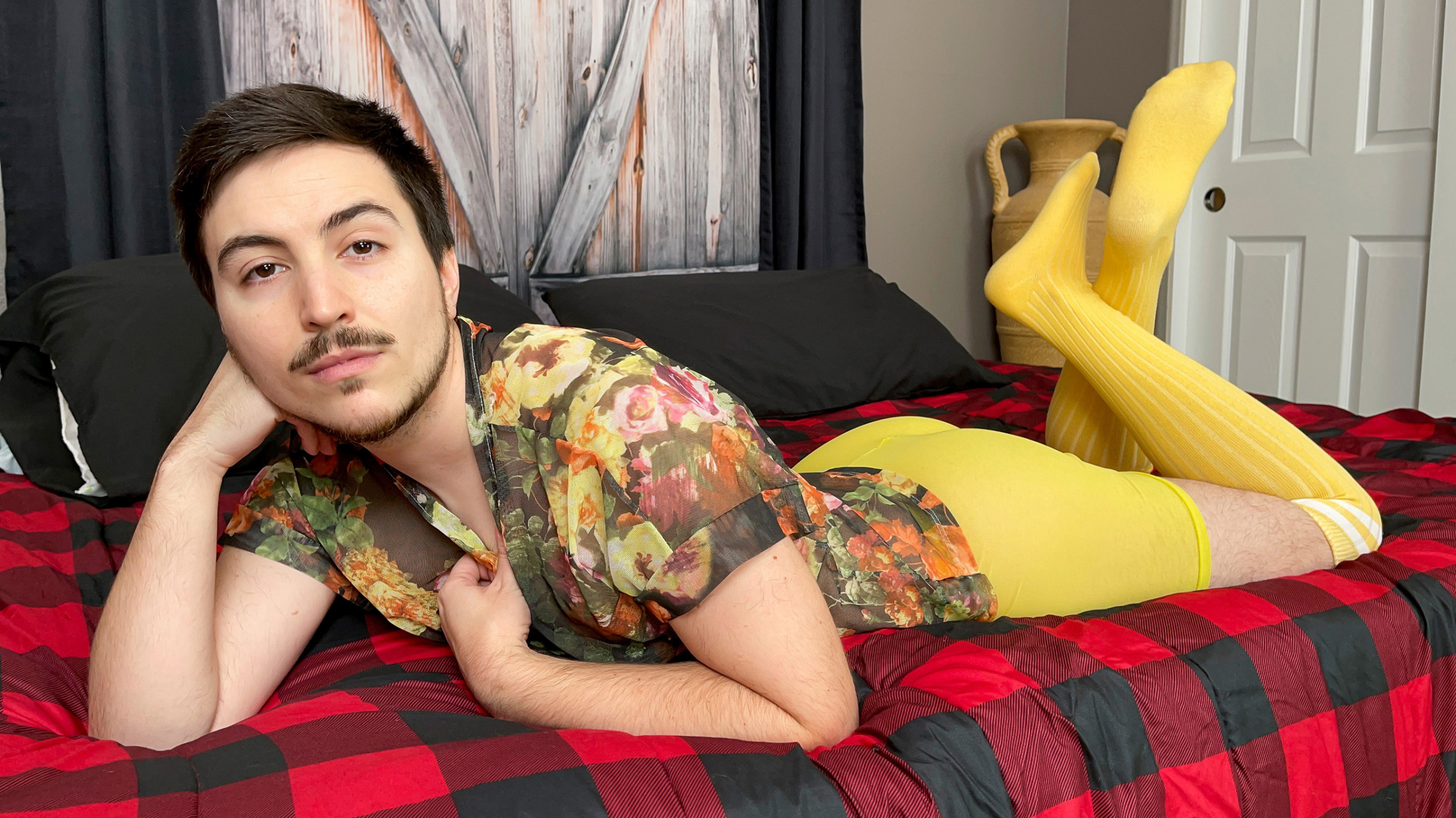 Keith Eros is the trans man of your dreams, and whenever you get to see him it feels so real! He shows up in your bed after work, teasing you about how much you want him. He knows he's driving you crazy as he undresses in front of you, slowly showing off all the sexiest parts of his body. Keith reveals his wet hole and all you want to do is put your mouth on it! Keith then masturbates right before your eyes, using his favorite dildo and squirting all over your bed just in time for you to... wake up!