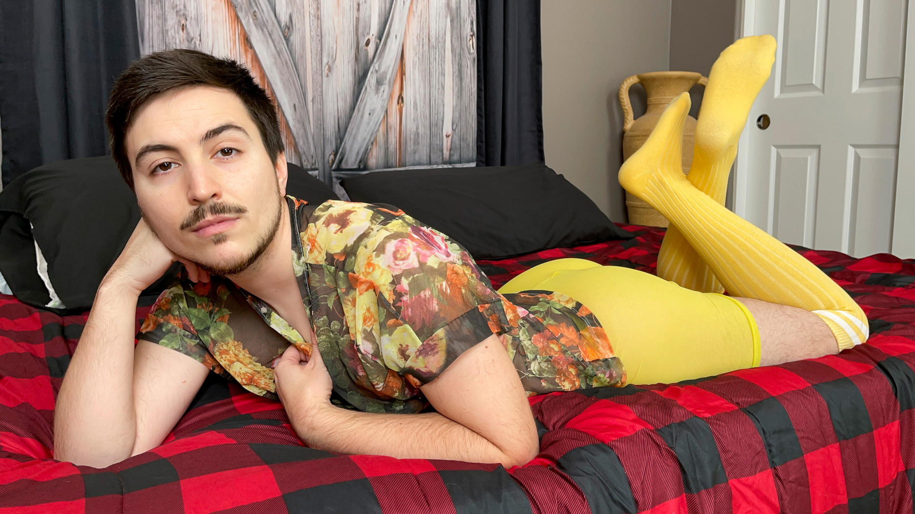 Keith is back and he looks hotter than ever! Dressed head to toe in the sexiest fishnet outfit, Keith is ready to get right to the action! He pulls his underwear to the side and immediately starts stroking his cock. Eventually his fingers slide into his dripping hole and Keith is moaning with pleasure. Keith pulls out his toy and starts fucking himself nice and deep and his pussy gets so wet. Keith hops down to the floor and starts riding the toy so he can stroke and bounce at the same time. After edging himself over and over, Keith finally decides he needs to cum badly so he lays down on his back and pumps away with the dildo until he cums all over it!