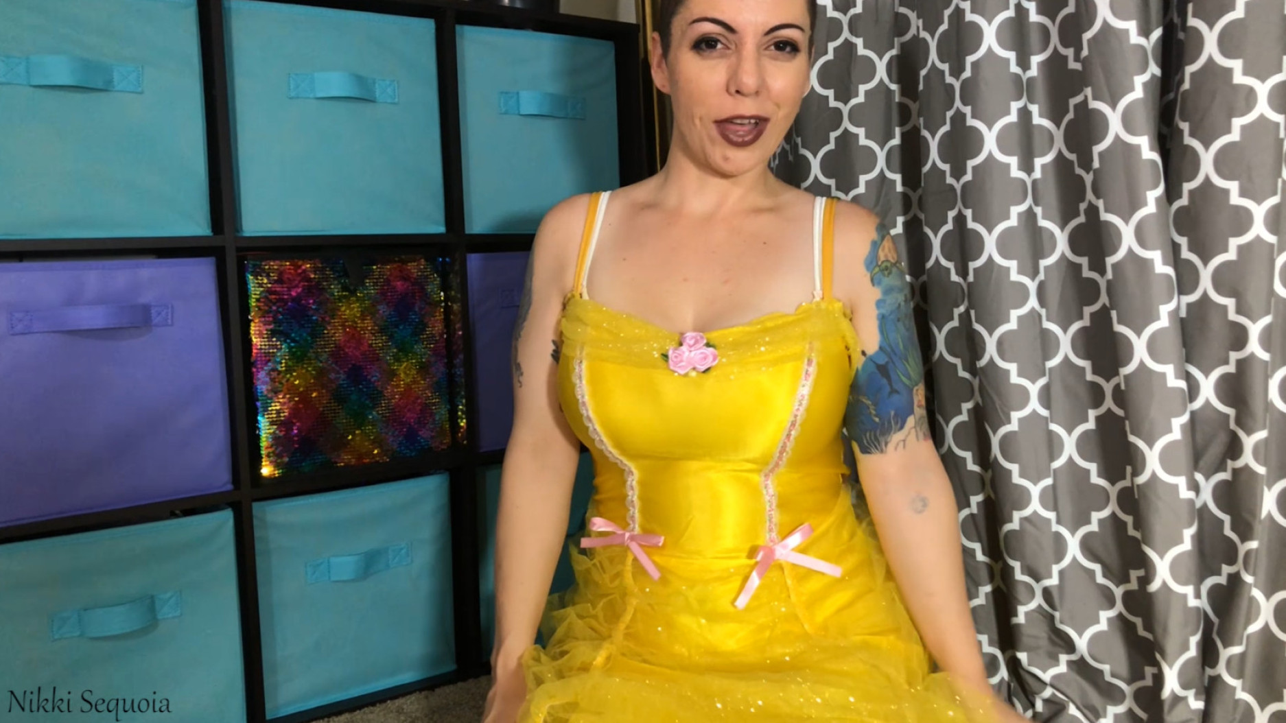 Nikki Sequoia shows up at Sydney Screams' pajama party in a mumu not realizing that she meant a SEXY pajama party! Nikki is embarrassed but Sydney has just the trick. She pulls out a fancy remote and presses a button and POOF, Nikki is taking off her mumu! What else can Sydney make Nikki do? Spank her ass, pick her nose, give her a foot massage? What a great party for Sydney