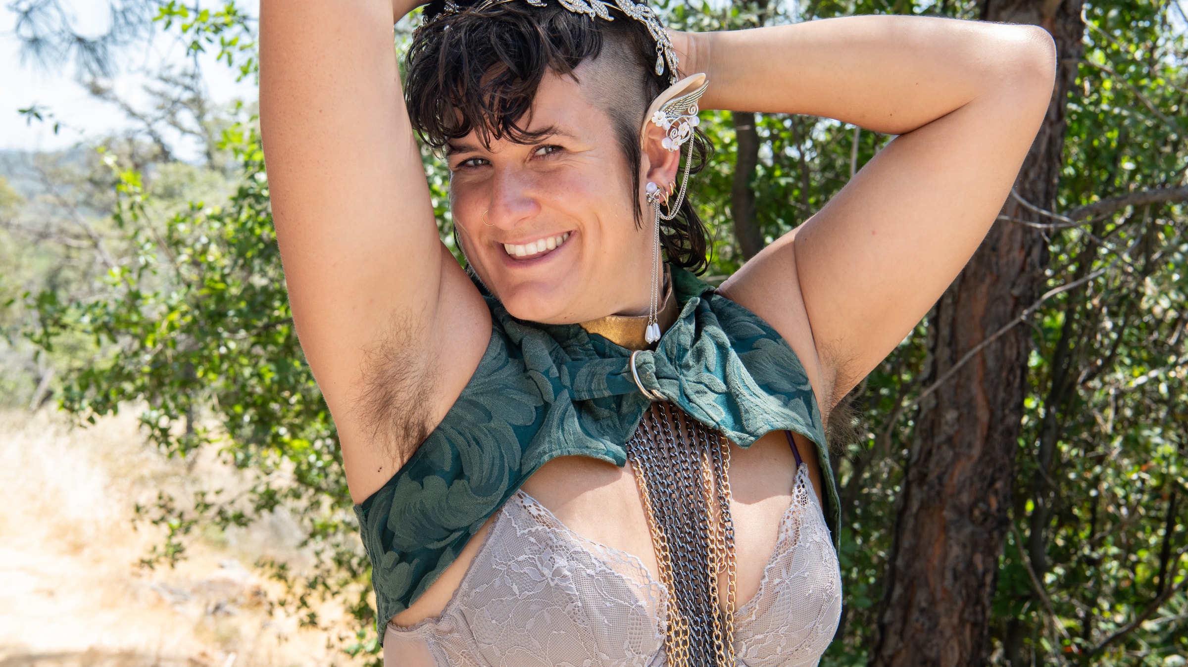 Devon catches you drooling over their hairy legs and invites you to worship their gorgeous all-natural body. They give you a tour of their hairy pits, supple tits, and dark bushy pussy before putting your desperate tongue to good use!