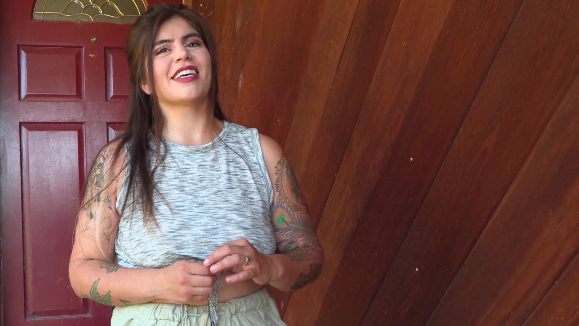 Brujx shows off her beautiful body in my backyard before getting naked and making herself cum on my picnic table.