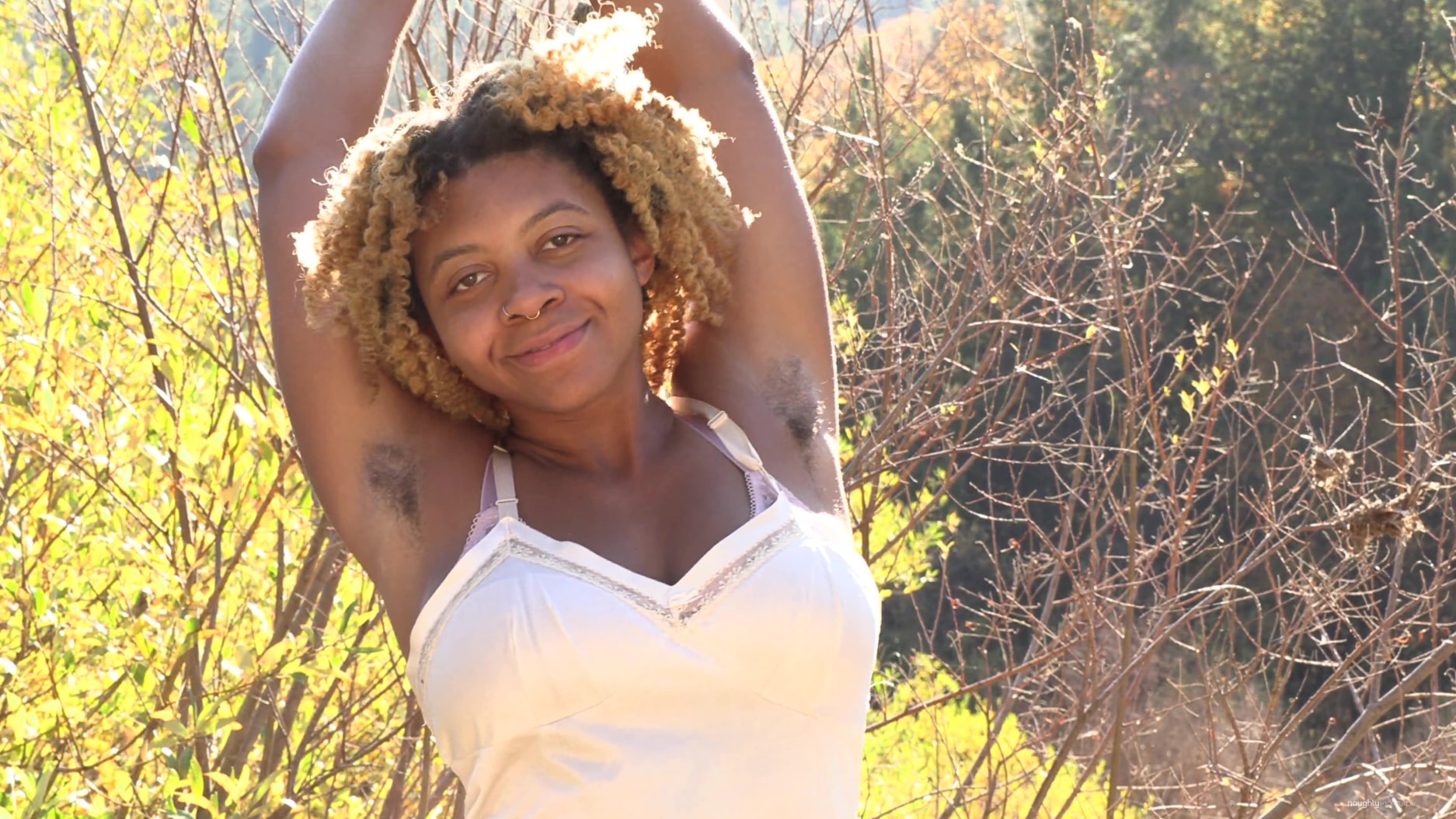 Oya has fun noodling out in nature and spreading her beautiful hairy pussy for you.