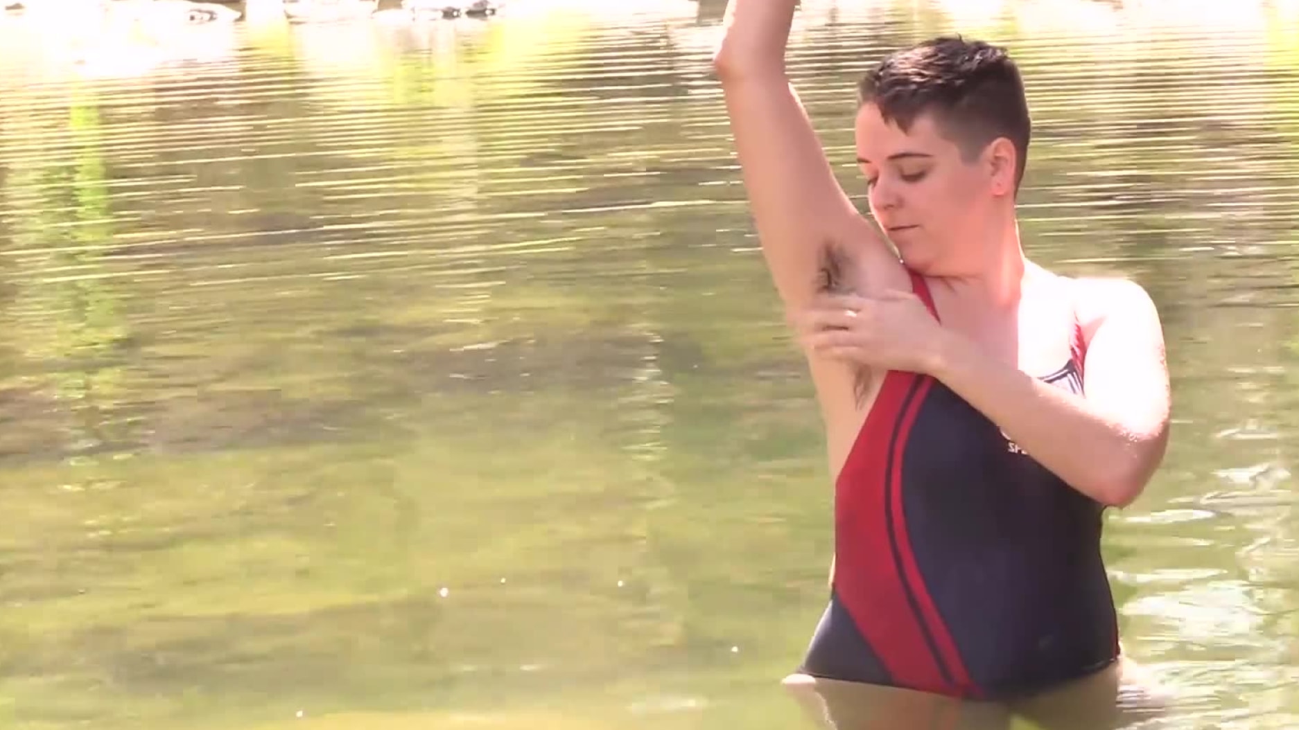 Harley shows off her gorgeous bod in this bikini before getting it all wet and stripping it off in the river, she splashes and puts water on her gorgeous hairy armpits and bush before swimming around and finally using a glass dildo in her pussy.