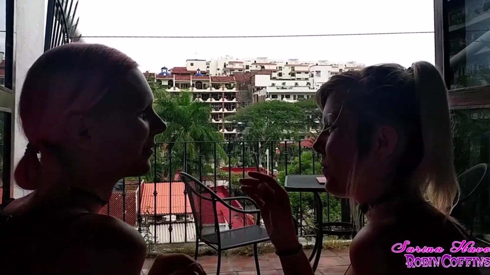 Oh no! The Wifi connection in our Puerto Vallarta condo cut out right in the middle of our steamy cam show! Now what do we do? With their lovense toys still inside, Robin finds that she just can't help herself...as usual. So she lures Sarina to the kitchen for a little more fun. Sarina follows and begins to devour Robin's dripping wet pussy while the toy vibrates away. Ravenous for more Robin takes Sarina deep inside toy and all! Double penetrating her tight little pussy hole. Fuck you have no idea how amazing that feels! But at least you can watch the bliss unfold. simply too incredible to describe! Robin then spreads her creampied pussy against the glass table and rubs Sarina's cum all over it!