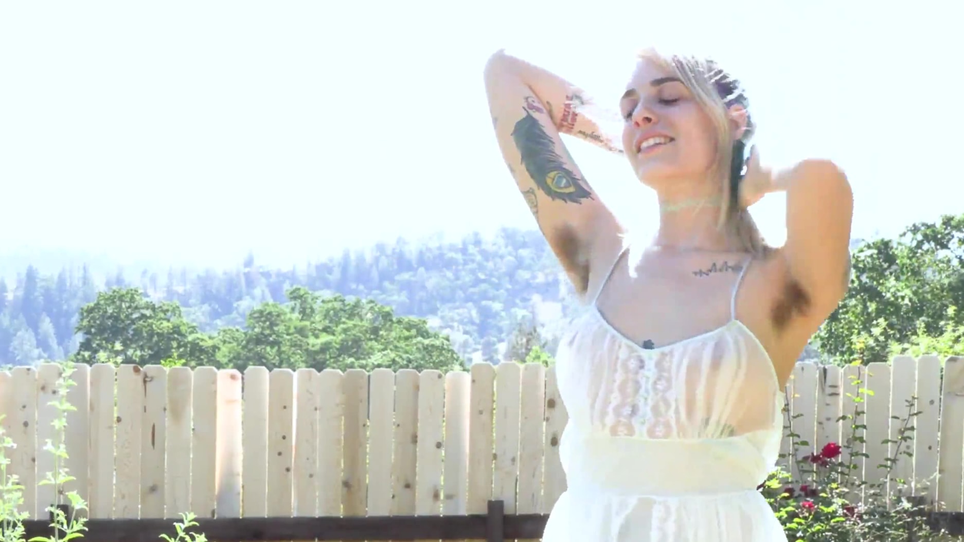 Pearl loves teasing you with her flirty smile and perfect all-natural body hair. She strips down in my garden, toys with her beautiful hairy pits, and sits down to spread her hairy pussy wide open for you.